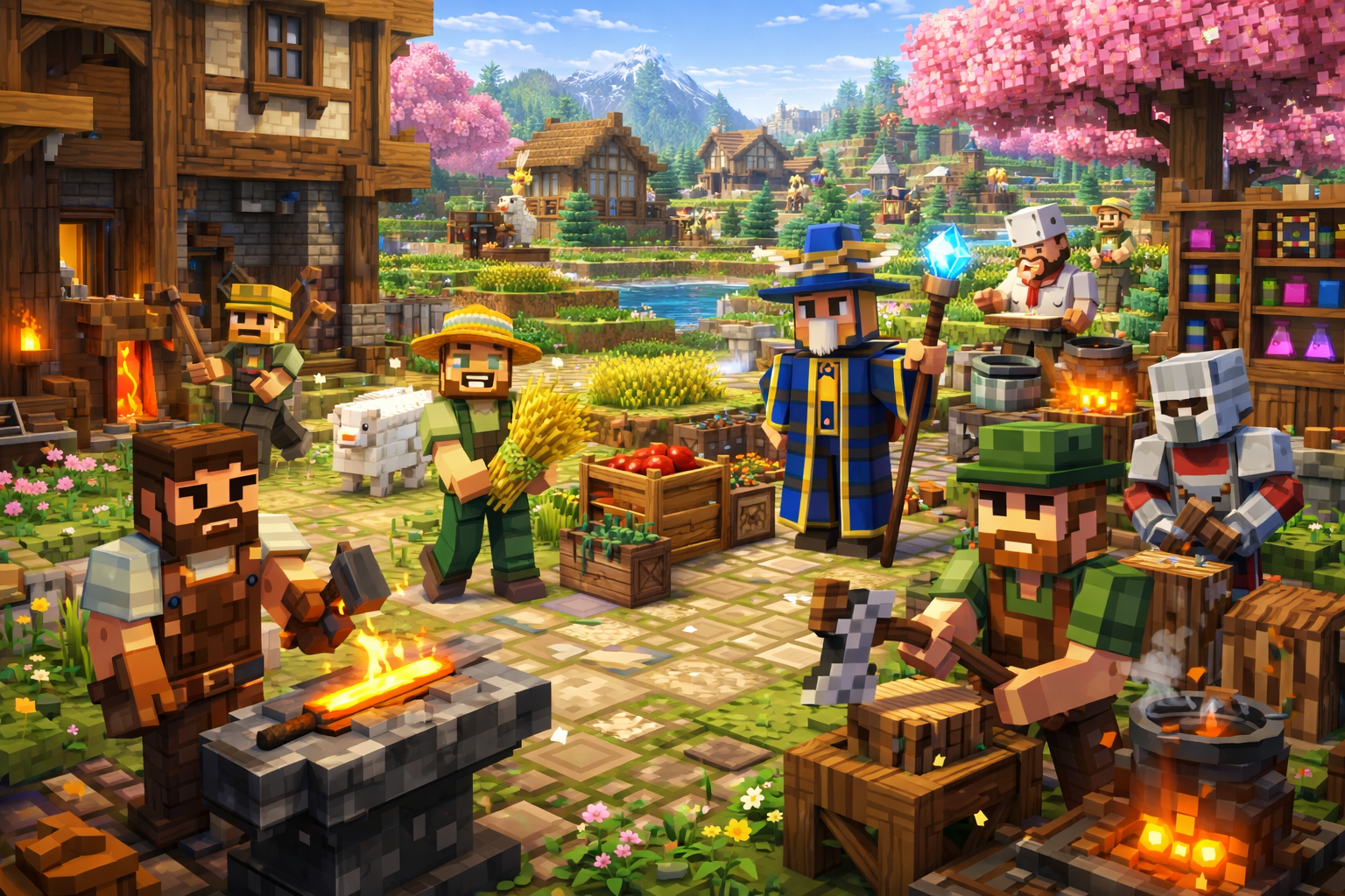 Choose from 20+ professionsโMiner, Farmer, Hunter, Brewer, and more. Level up and master your trade.